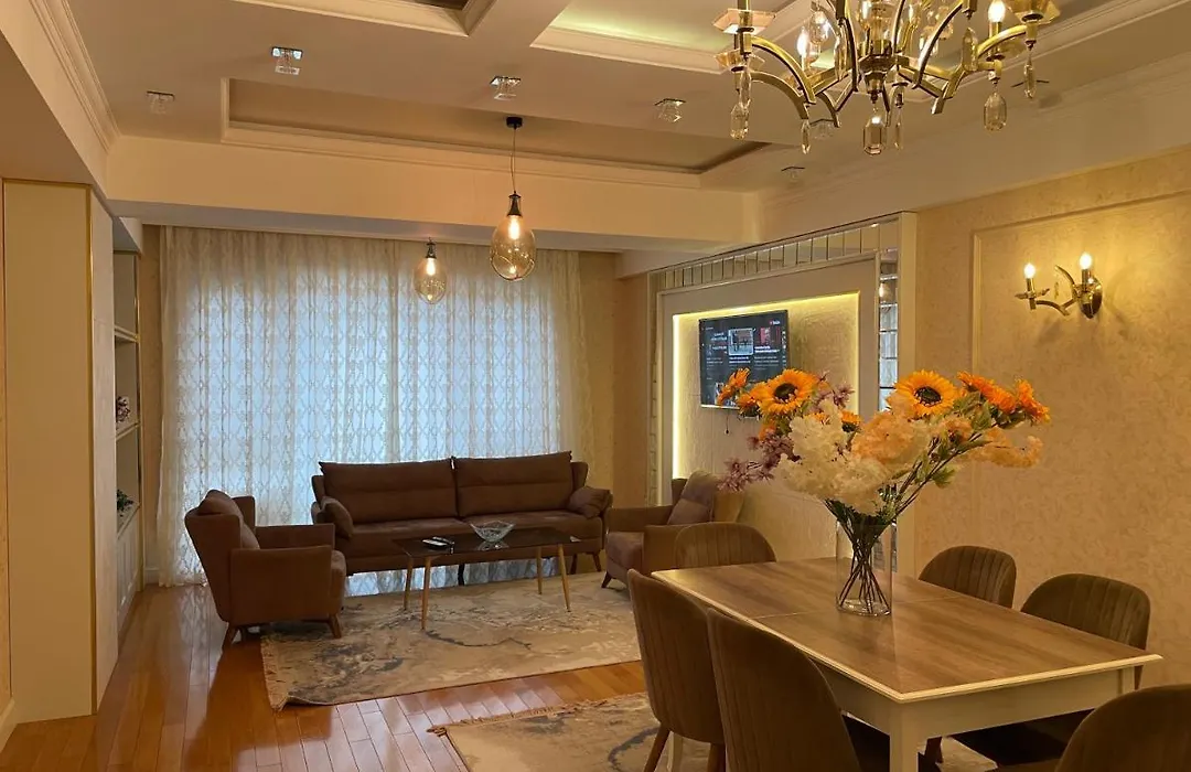 Guests can cook their own meals in a fully furnished kitchen. Reef Restaurant serves Azerbaijani cuisine and is situated 7 minutes' walk away. Khatai underground station is 800 metres away and Heydar Aliyev airport is a 23-minute drive from the 130 m² apartment. The inclusion of a sauna ensures a pleasurable experience. Other notable features are a terrace, and the pool view from it.